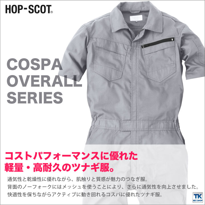 HOP-SCOTコストパフォーマンス リップストップ半袖つなぎ(メンズ) 商品の 詳細 コストパフォーマンスに優れた軽量・高耐久のつなぎ服。