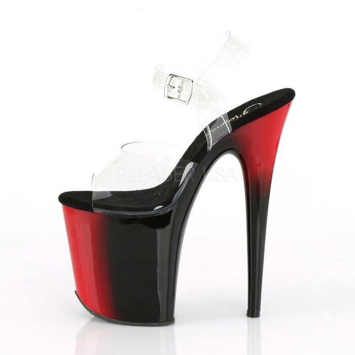 取寄せ靴 PLEASER プリーザー サンダル レディース メンズ 約20cm ハイヒール 約10cm ストーム 厚底サンダル オープントゥ アンクル ストラップ バックル クリア 赤 レッド 黒 ブラック 大きいサイズあり 21.5 22 22.5 23 23.5 24 24.5 25 25.5 26 26.5 27 27.5 28 cm センチ